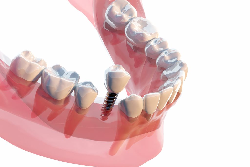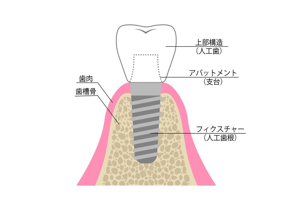 インプラントは歯を補う方法の一つで、顎の骨にインプラントを埋め込むことでしっかりと安定し、天然の歯と同じ程度の噛み心地が再現されます。